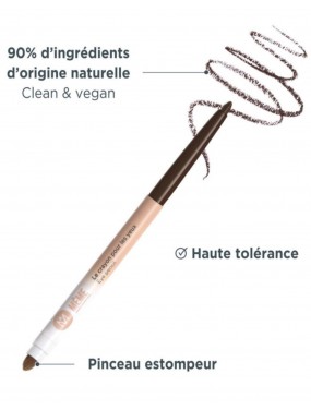 Sans parfum ni silicones, ce crayon pour les yeux est formulé avec un système de conservation idéal pour les yeux délicats. Il convient particulièrement aux personnes en traitement contre le cancer ou souffrant d’eczéma au niveau des yeux. Végan, il peut être utilisé par les femmes enceintes et allaitantes, grâce à sa composition contenant 90 % d’ingrédients d’origine naturelle incluant des actifs précieux :