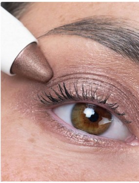 - Une ombre à paupières qui peut aussi être utilisée par touches en illuminateur de teint, ou “highlighter”