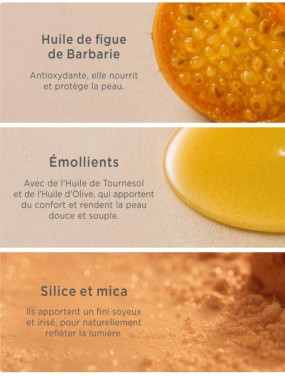 - Silice et du Mica : ils apportent un fini soyeux et irisé, pour naturellement refléter la lumière