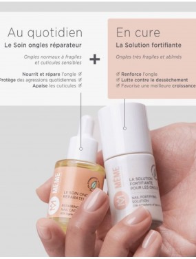 Le Soin ongles réparateur nourrit, protège les ongles fragiles et apaise les cuticules sensibles au quotidien. Particulièrement conseillé pour lutter contre les effets secondaires des traitements contre le cancer, et que vos ongles soient mous, secs, cassants ou fragilisés, le Soin pour les ongles vient à leur secours grâce à son action complète :